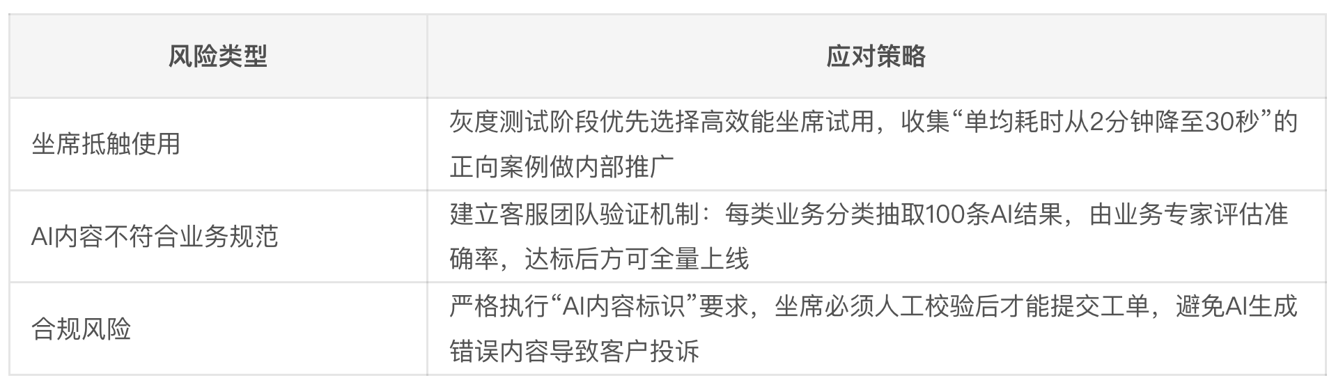 - 第二阶段:完成大模型对接、灰度测试上线、客服团队验证;