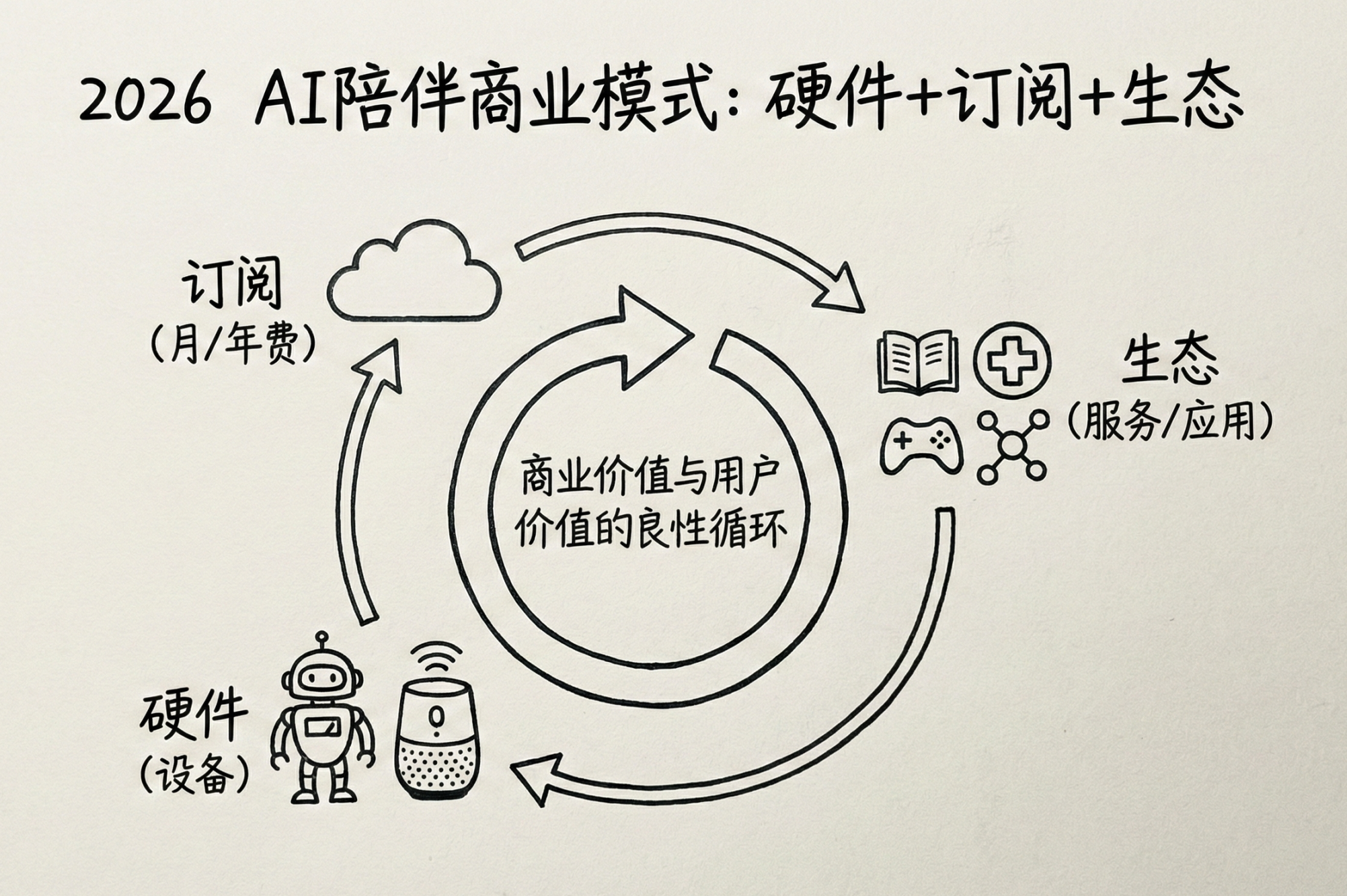 AI陪伴行业的商业模式在2026年完成了根本性转变。早期产品主要依赖一次性硬件销售或简单的应用内购买,这种模式难以支撑持续的服务优化和内容更新。随着技术成熟和用户接受度提高,”硬件+订阅+生态” 的复合模式成为主流,实现了商业价值与用户价值的良性循环。