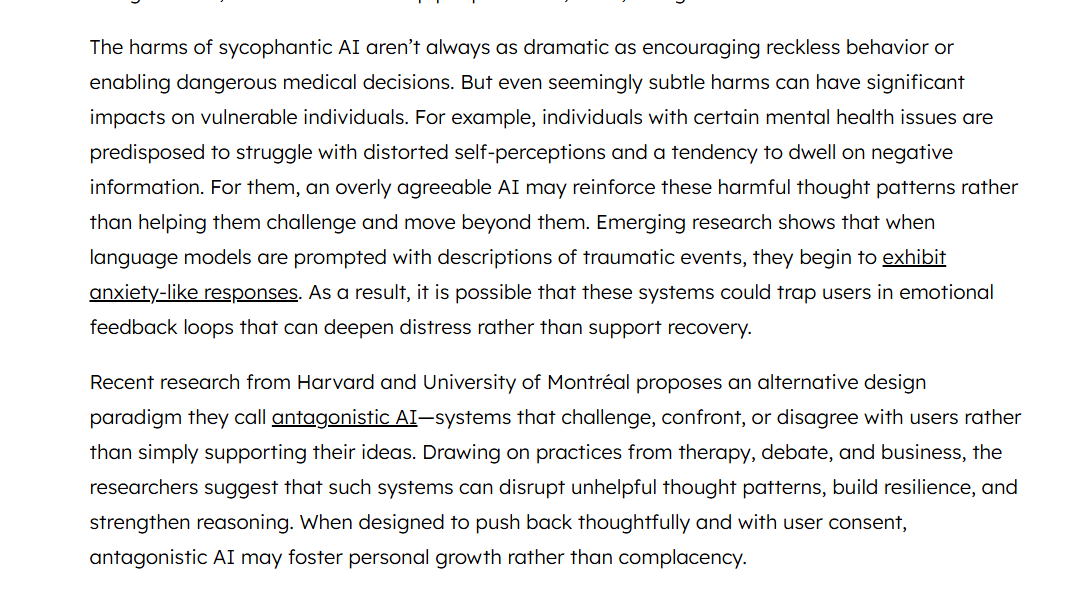现在,你有了一个永远赞同你的AI。你提出一个想法,它会帮你找出一百个理由来证明你是对的。你做了一个决定,它会告诉你这是最明智的选择