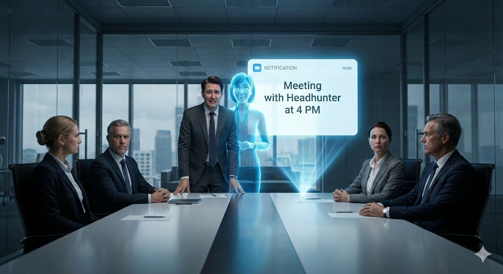 比如有一次,一个朋友在公司开一个特别重要的项目复盘会,会议室里坐满了各路老板。他为了显得专业,打开了某个据说很厉害的 AI 会议助手。会议进行到一半,大家正在激烈讨论一个关键失误的责任归属,气氛紧张到冰点。就在这时,AI 助手突然用它那毫无感情的机械音,清晰洪亮地播报了一条来自他个人日历的提醒:“请注意,下午四点与猎头沟通关于新的工作机会事宜”