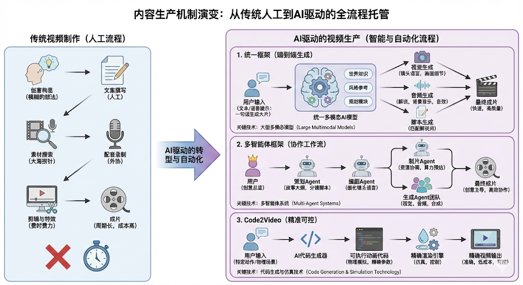 这个问题,现在也有了新的解法。一种叫“Code2Video”的思路就很有意思。它的核心想法是,我不直接生成那些难以控制的像素点,我生成的是可以执行的动画代码。