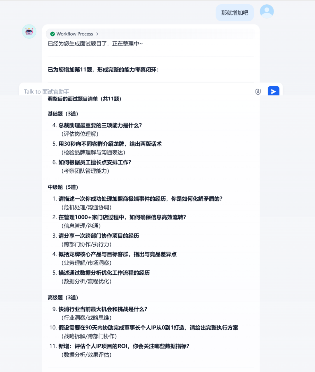 面试助手是一个典型的多轮对话+文档处理+智能分析的应用场景,它完美展现了Dify对话流的核心优势。但更重要的是,这个案例具有极强的市场需求和实际应用价值: