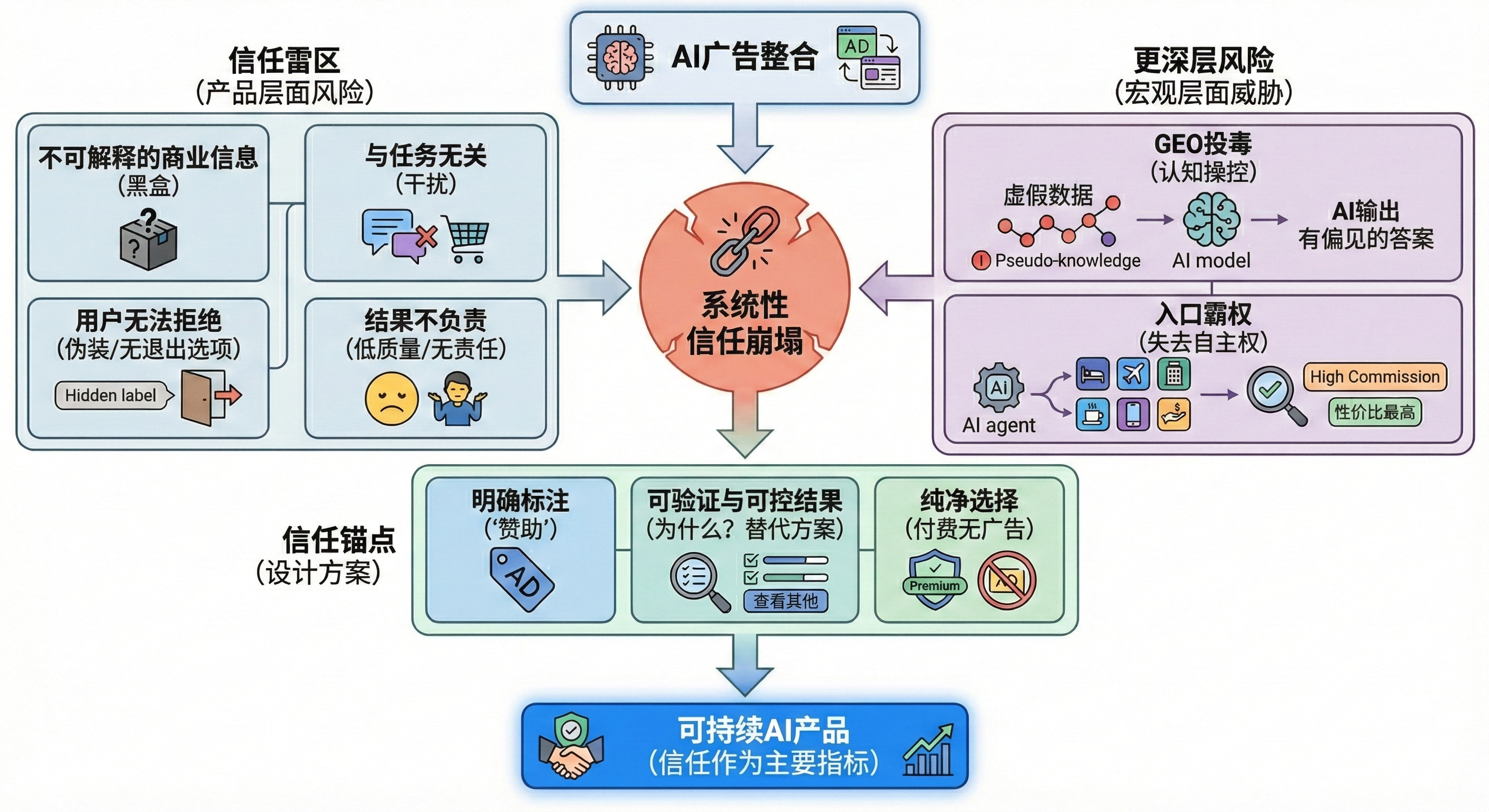 AI广告真正的风险,不是打扰用户体验那么简单。它触及的是一个更根本的东西:信任。一旦处理不好,引发的将是系统性的信任崩塌,这对产品来说是致命的