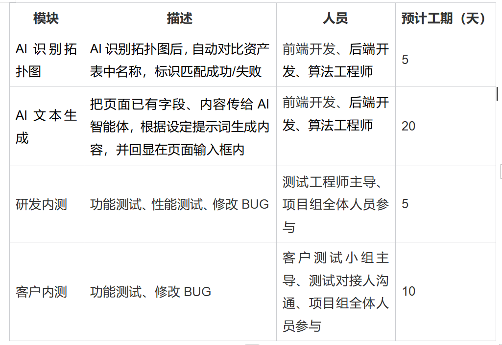 抱着“用AI解决真实业务问题”的初衷,我们启动了此项目管理类系统+AI功能的落地,从需求调研到上线测试大概用时2个月,已在1家客户试点,反馈良好,单项目周期缩短约2个工作日,效率提升明显。结合这个真实项目,梳理整个+AI产品落地的步骤,分享给大家。