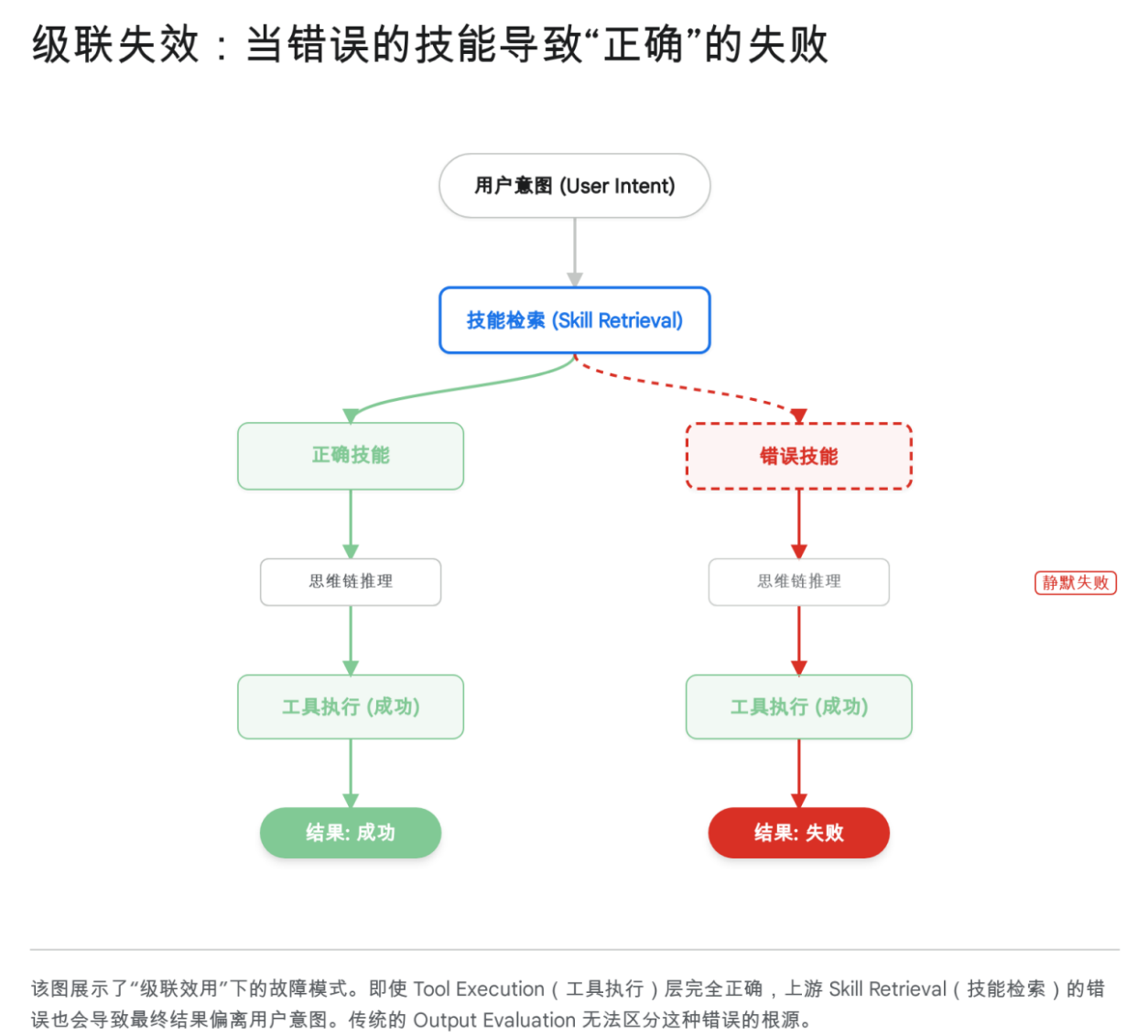 这被称为级联效用错误(Cascading Utility Error)。在传统的 RAG 系统中,如果检索错误的文档,模型可能会产生幻觉。但在 Agent 系统中,如果检索错误的 Skill,模型会一本正经地执行错误的任务。