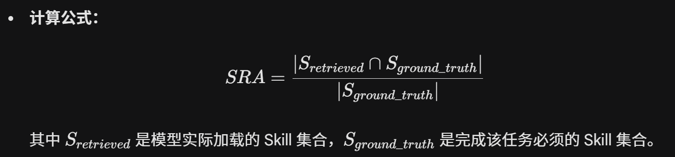 3.1.1 Skill Retrieval Accuracy (技能召回率 / SRA)
