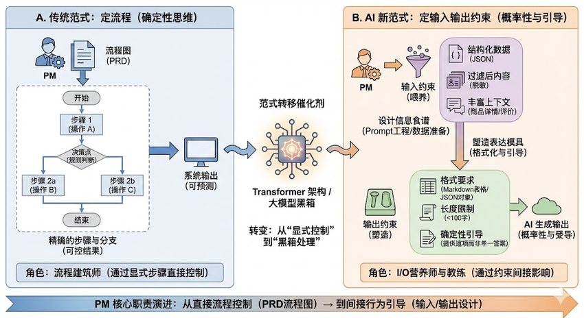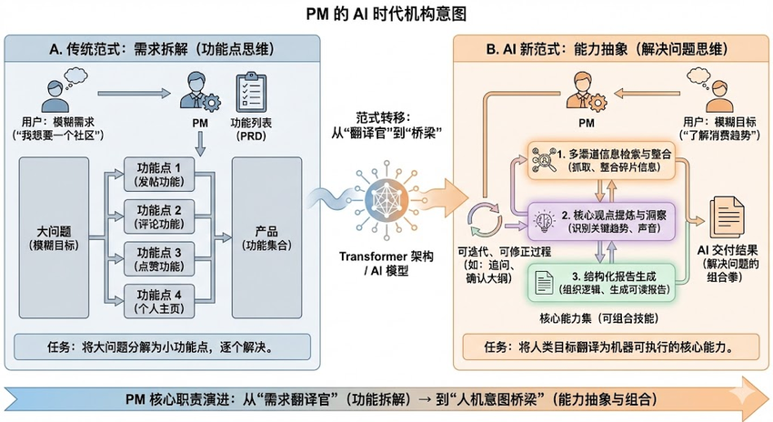 PM的角色,从一个设计“每一步怎么点”的建筑师,变成了一个设计“模型怎么被喂信息、怎么交付结果”的营养师和沟通教练