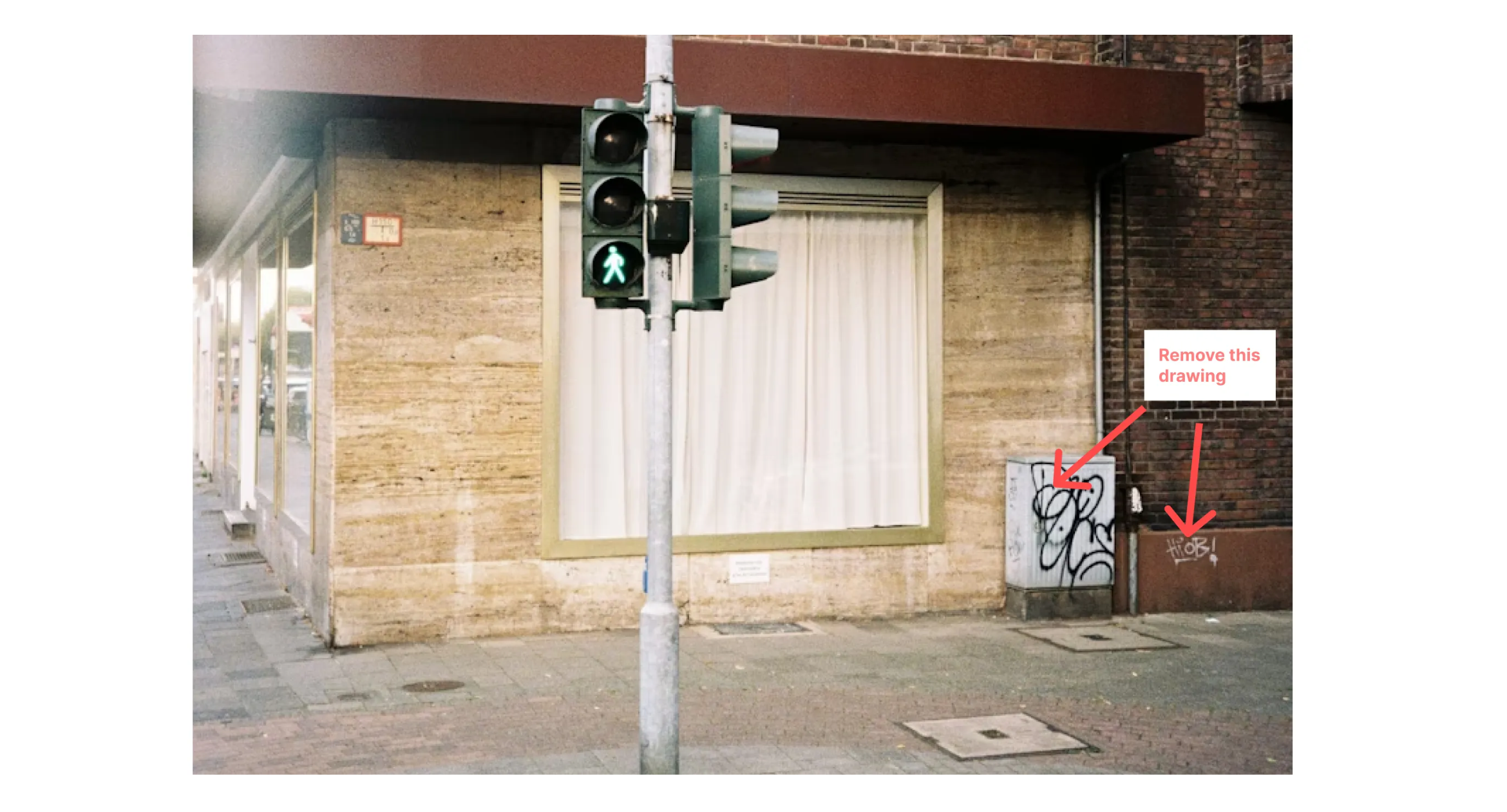 移除图像中涂鸦前后对比。