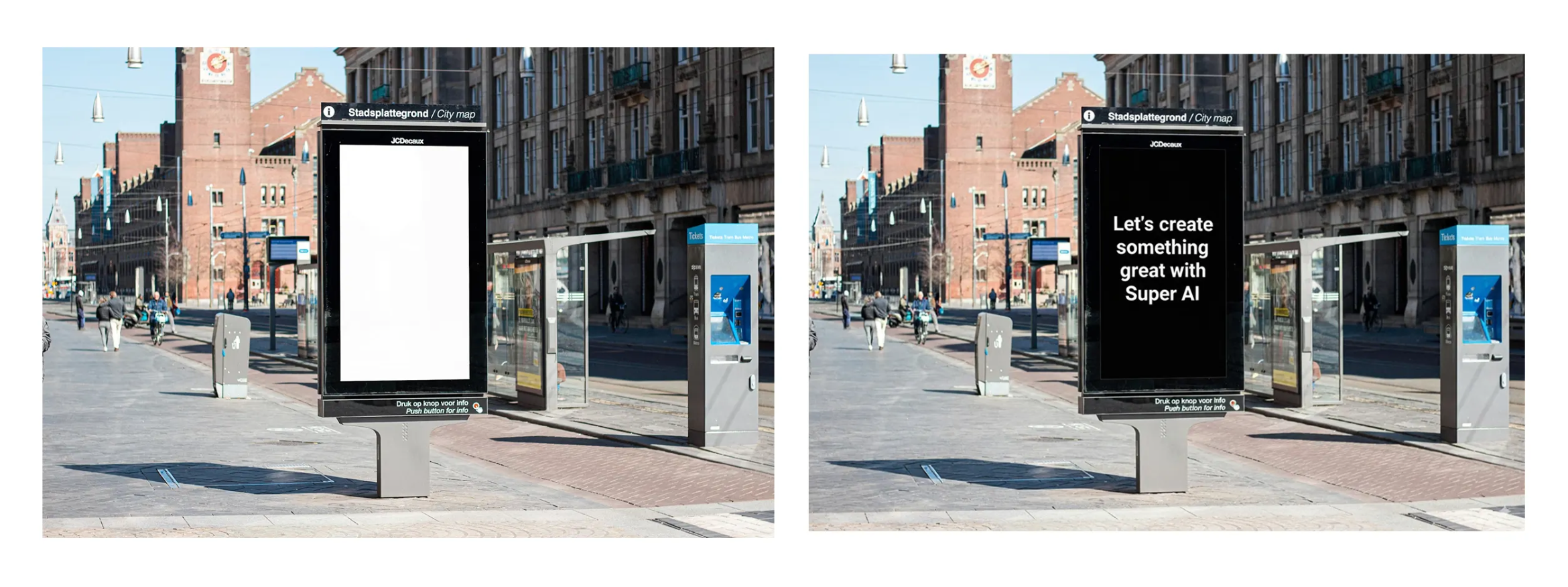 提示词:在广告牌上添加文字 “让我们与超级 AI 共创非凡”