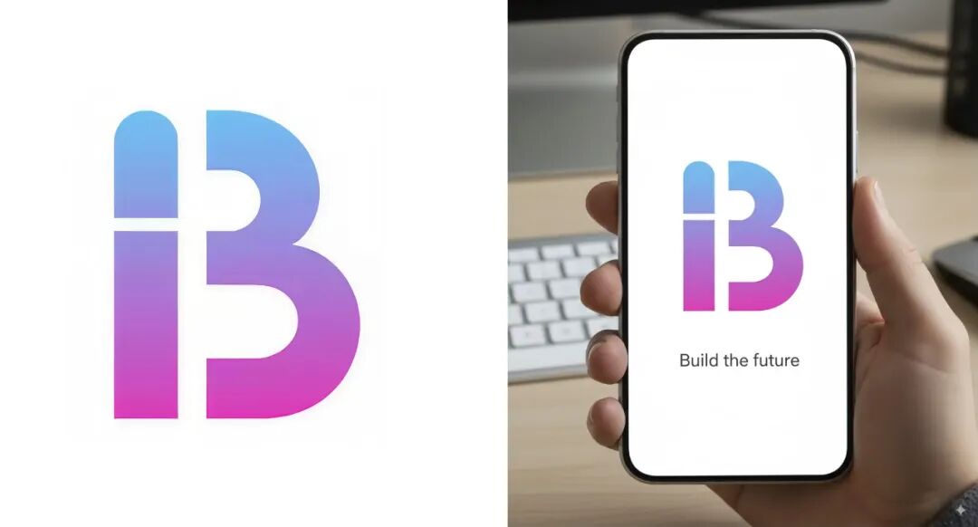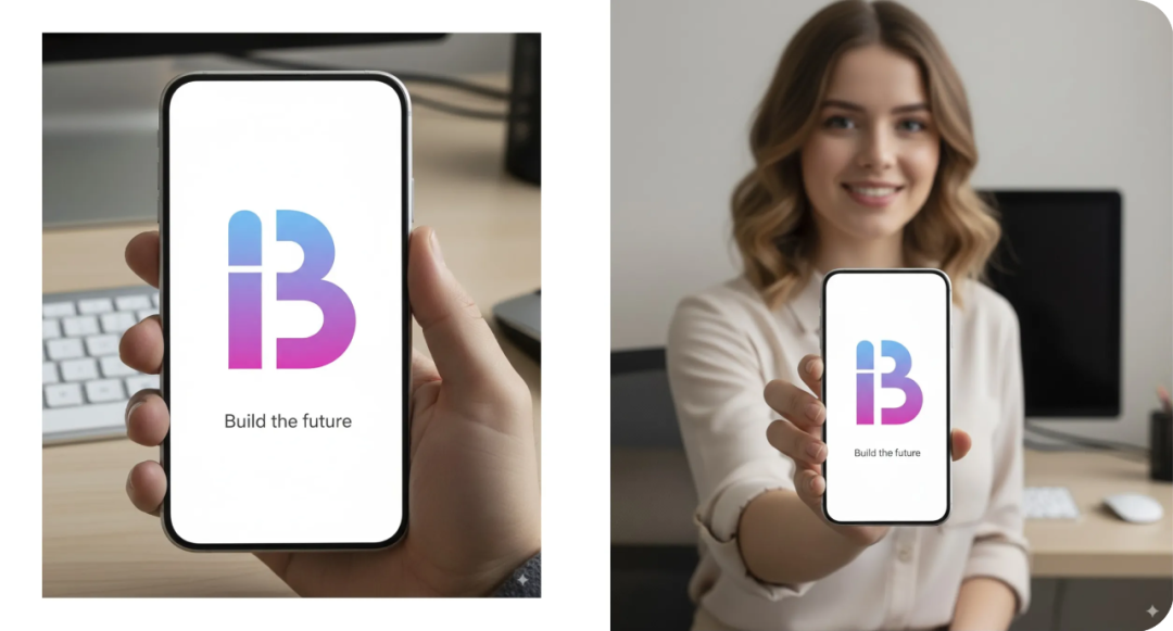 提示词:屏幕显示此 logo 和文字 “构建未来” 的手机