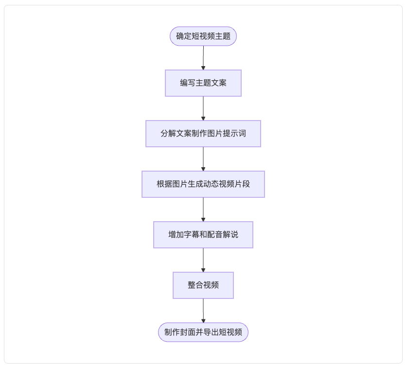 由于我们在最初的参数中做了限制,因此生成的视频播放时长比较短。视频的质量不是很理想,我们使用的工作流也比较简单。但可以证明使用Agent来自动完成短视频创作这条路是走得通的,后期可以随着我们经验的不断提升,可以用Agent制作出大片级的爆款短视频一定是可以的。
