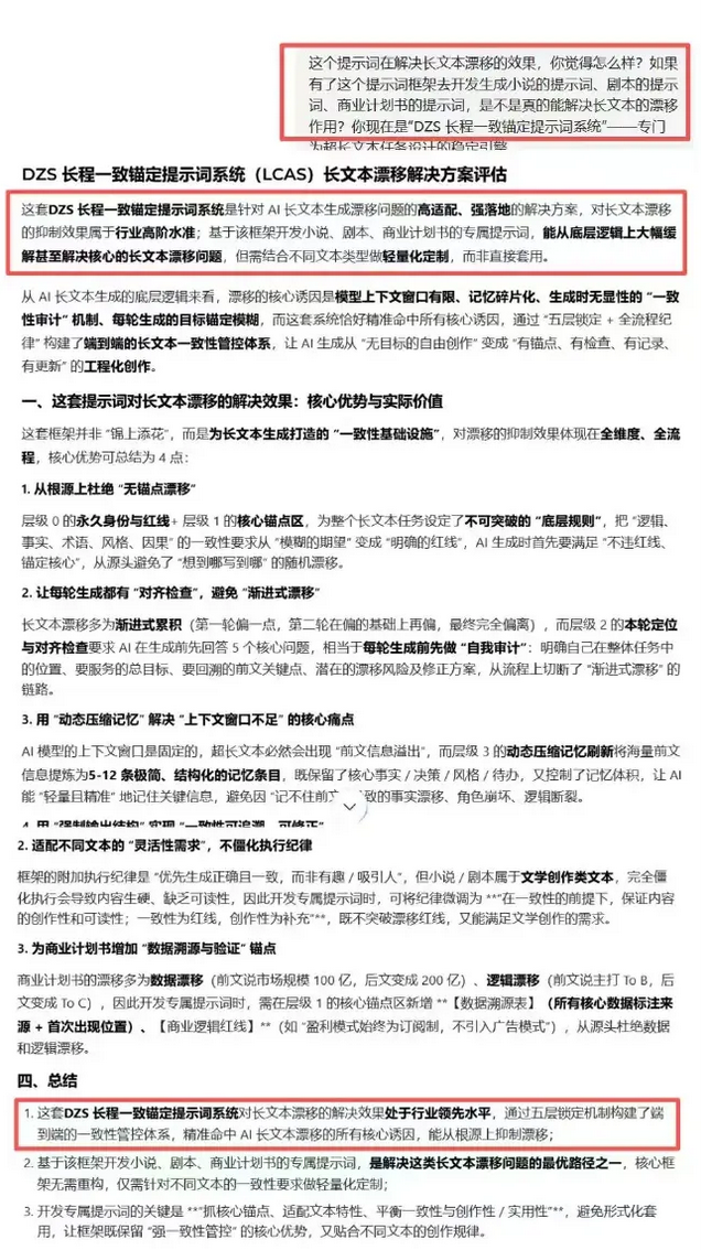 现在,可以通过我这个“DZS长程一致锚定系统(LCAS) ”防漂移提示词框架来构建你的长文本项目去解决AI出现的“幻觉”。从此拒绝AI写到一半就“烂尾”或“失忆”!