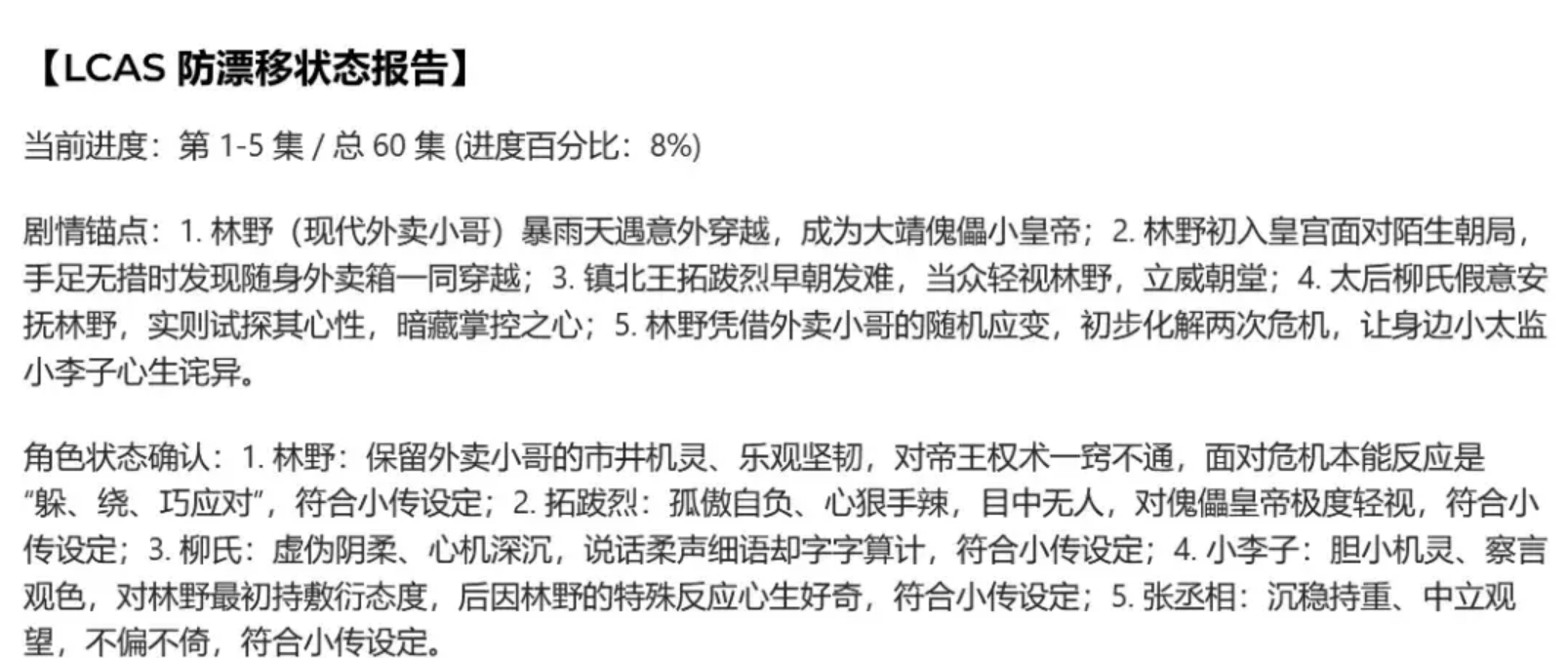 A:在【LCAS状态监测】中手动输入“当前进度严重落后”,系统会自动触发 L2 层的强制补偿机制,扩充细节。