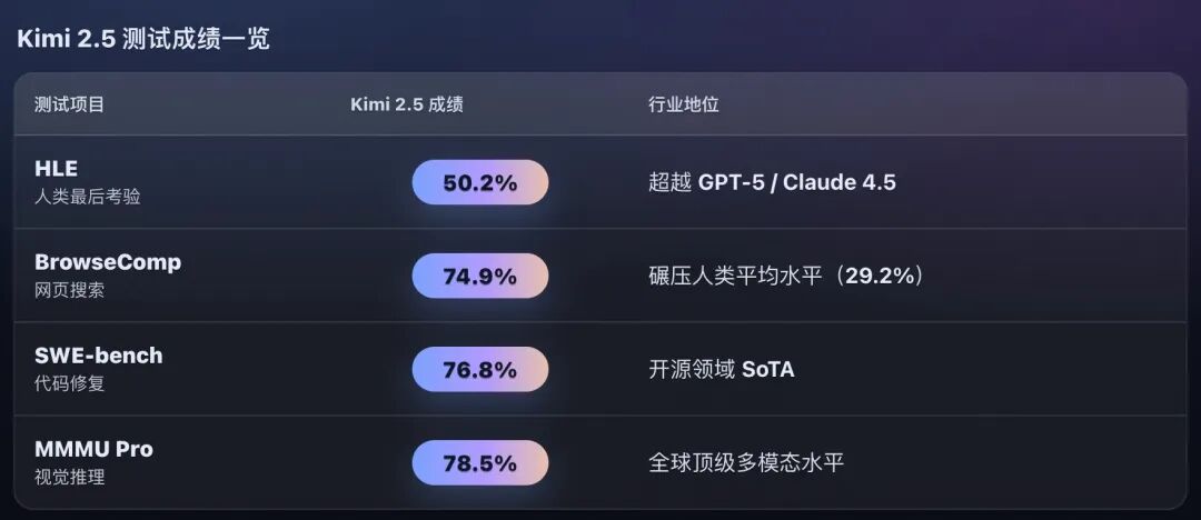 Kimi 2.5 震撼发布!万亿参数“大圣集群”现世,多项指标超越 GPT-5,国产模型正式进入“思维竞赛”时代