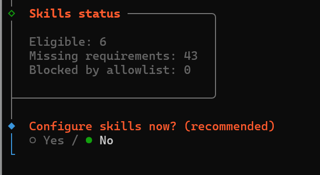 选择skills。(如果本地的话,可以选择NO,跳过)