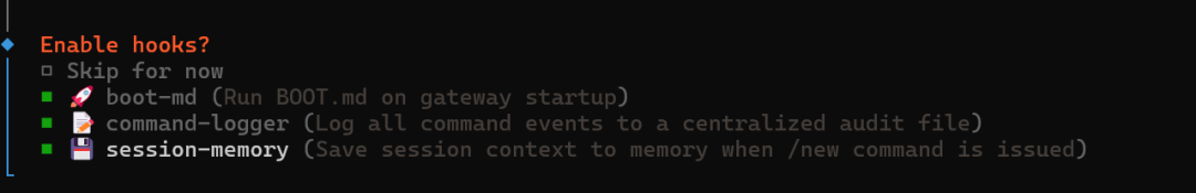 这里的话3个都选择(启用全部钩子),可以通过空格键来选择确定。
