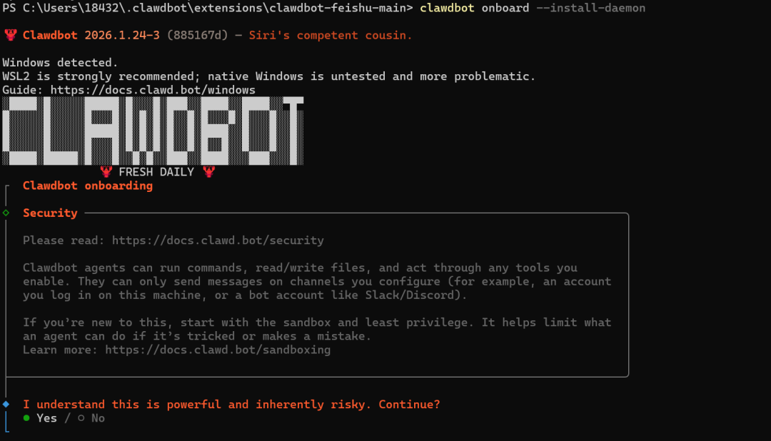 本文除过思考给AI的权限是否过大,还带来了在 Windows 部署 Moltbot 并配置飞书的完整过程。