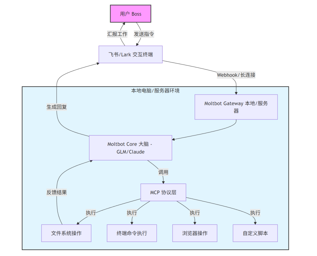 为了让大家更直观地理解Moltbot 凭什么能接管电脑?我画了一张架构图: