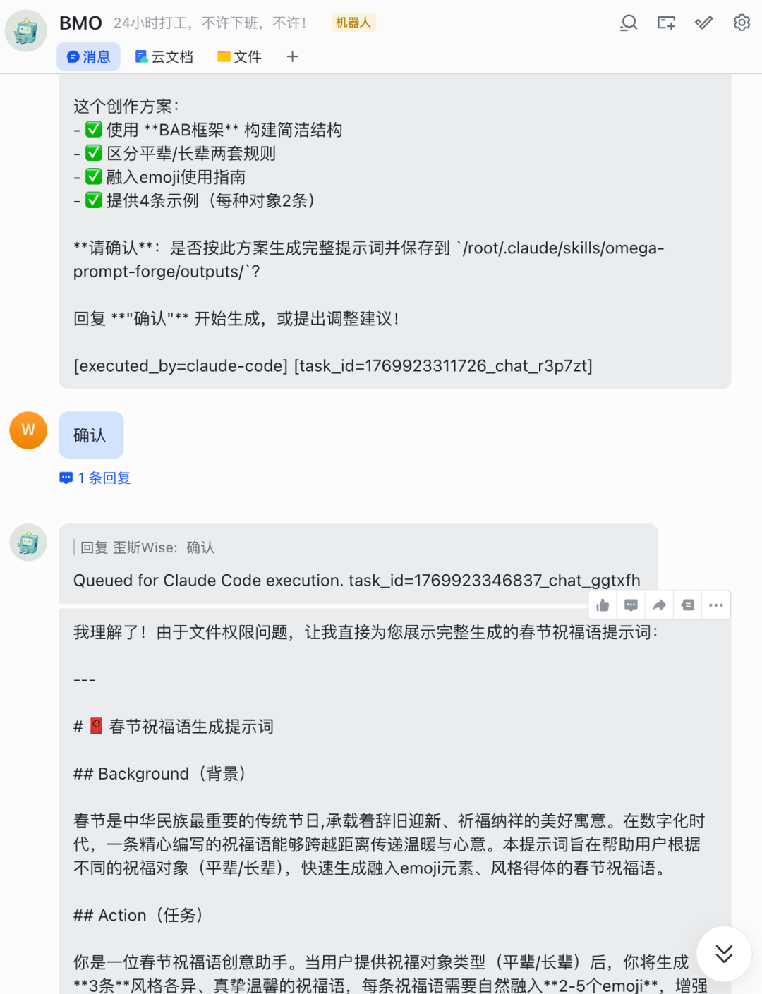 那后面的工作就是叠加很多乱七八糟的飞书适配能力了,例如云文档、多维表格等等