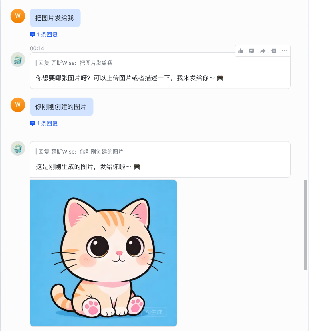 搞了还是蛮久了,终于把机器人创建图片和发送图片消息的能力弄好,以前不需要发图片消息是因为都在电脑上可以看,现在需要直接发消息出来了。
