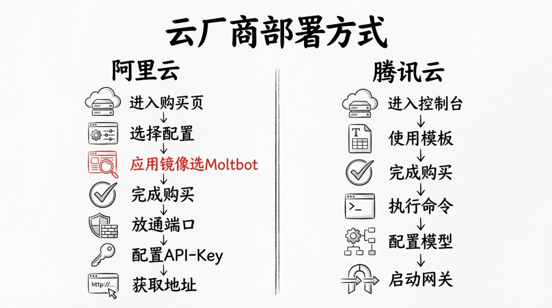 而腾讯云、阿里云接入之后,则是通过轻量的云端服务器,来通过钉钉、企微作为入口进行操作。