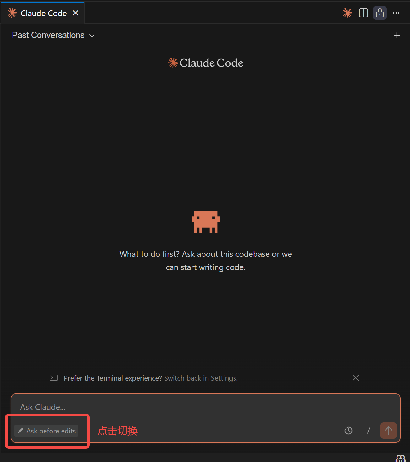 3.将任务模式 可以切换为 Ask before edits (编辑前询问),以确保代码修改受控。