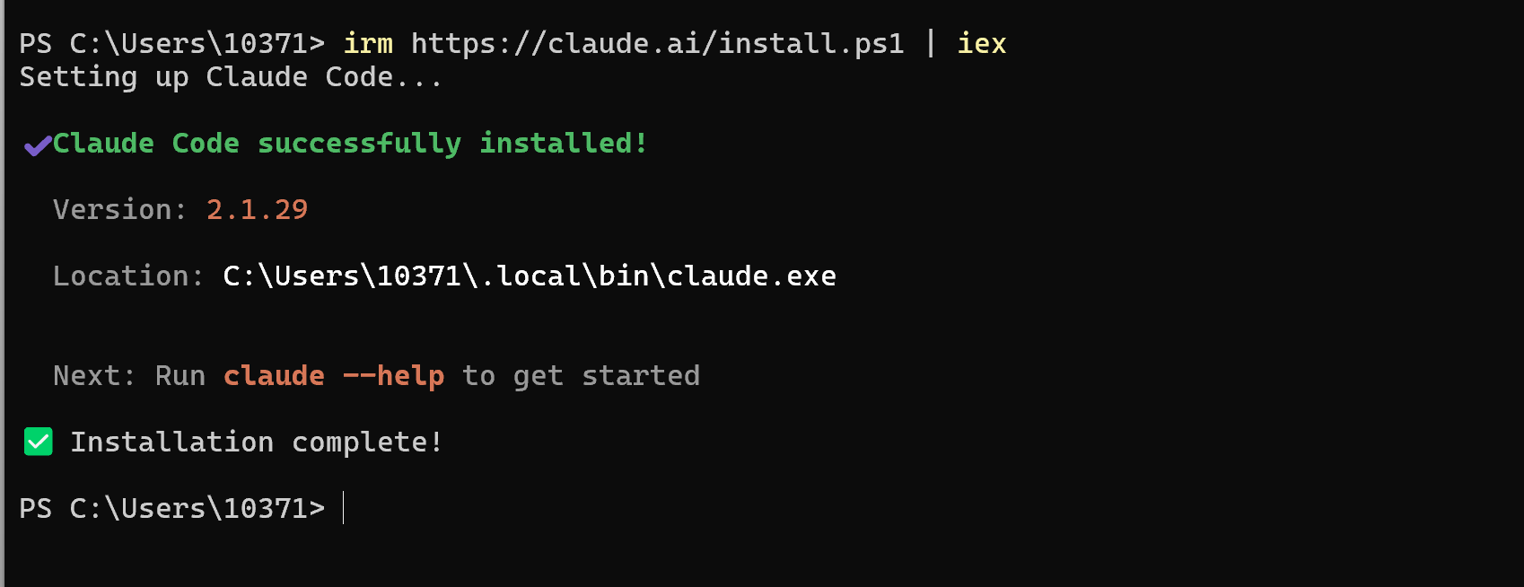 irm https://claude.ai/install.ps1 | iex