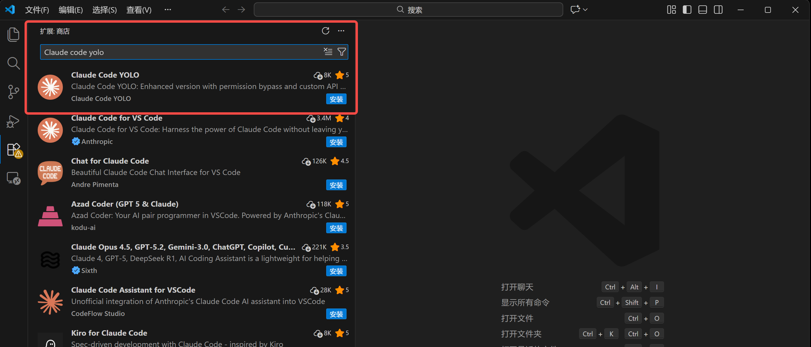打开 VS Code,在扩展市场搜索并安装 Claude code yolo(请搜索全称)。这个魔改版插件允许在 UI 界面中直接配置第三方模型参数。