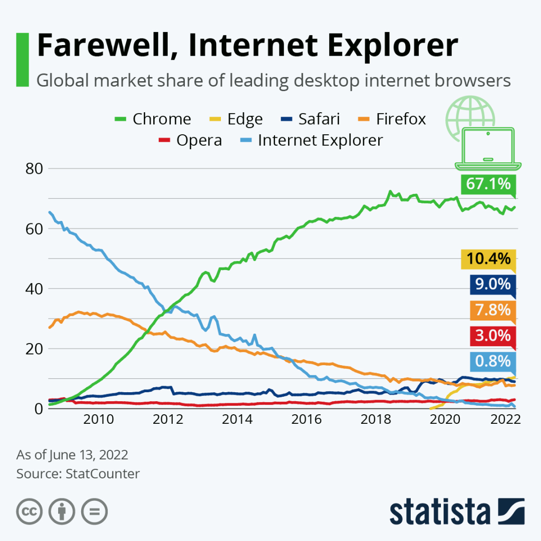 Chrome 用几年的时间就把 IE 钉在了耻辱柱上。
