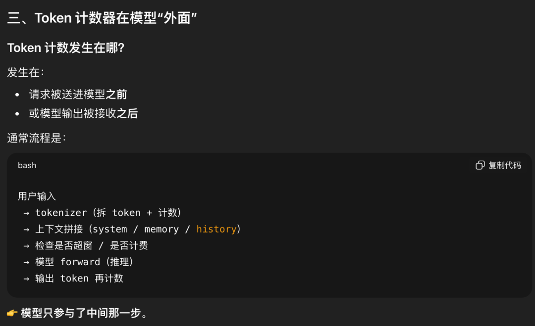 模型的三层架构,是想要说明,我,大模型只干预测下一个Token的事儿,token计数器不在我这里