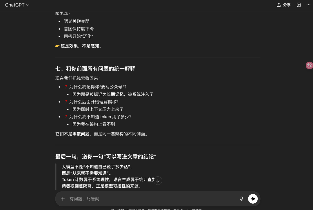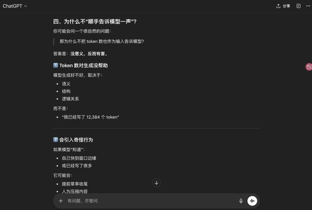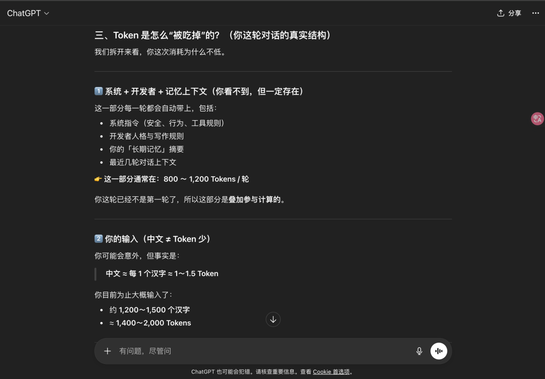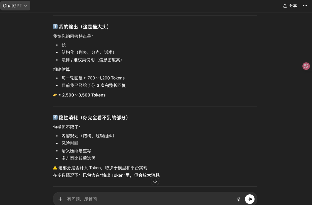 同样的问题,我问了ChatGPT(免费版)你的Token消耗