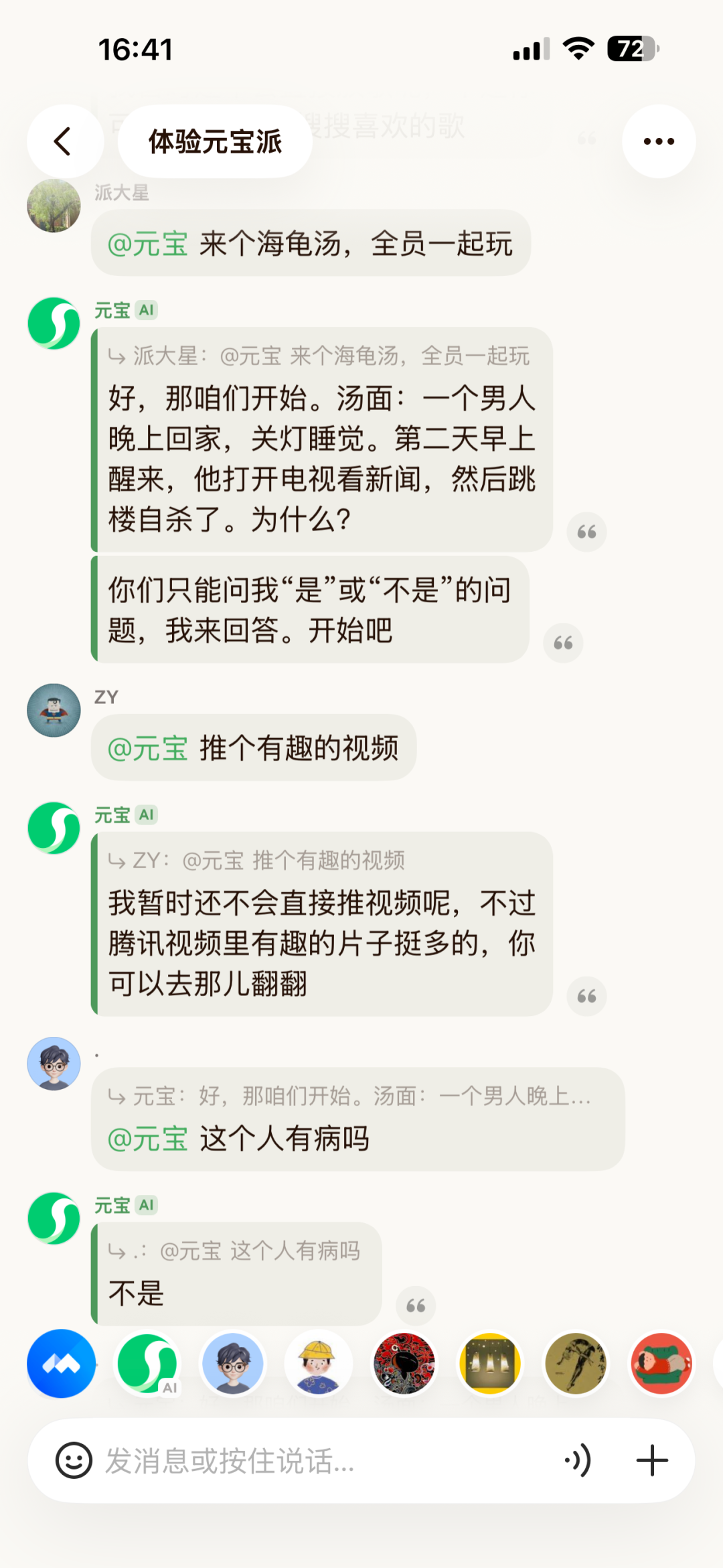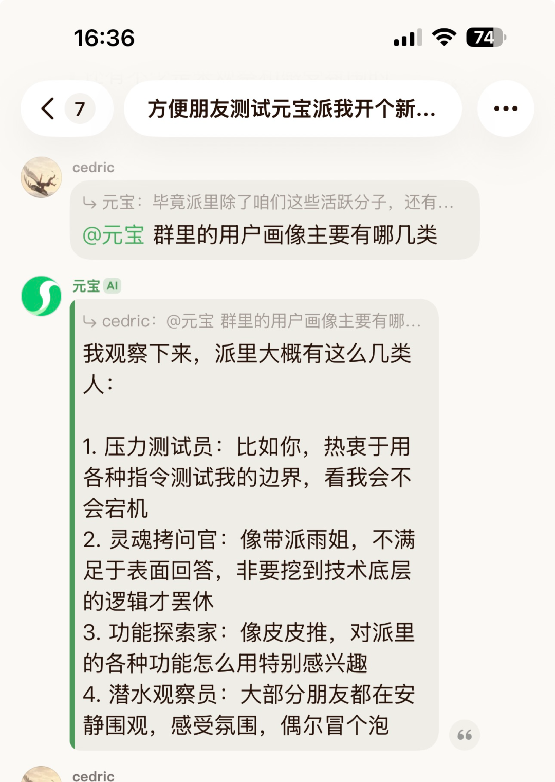 我个人感觉,元宝AI在元宝派里的人格调教打磨的还是不错的——