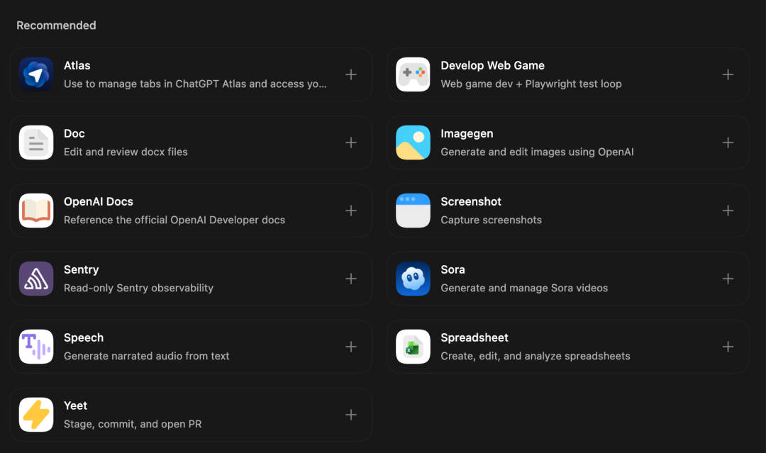 而这里推荐的第一波其实是OpenAI大礼包,看到Sora的时候其实就不难理解前面说的,Skills是万能的,VibeCoding也是万能的。
