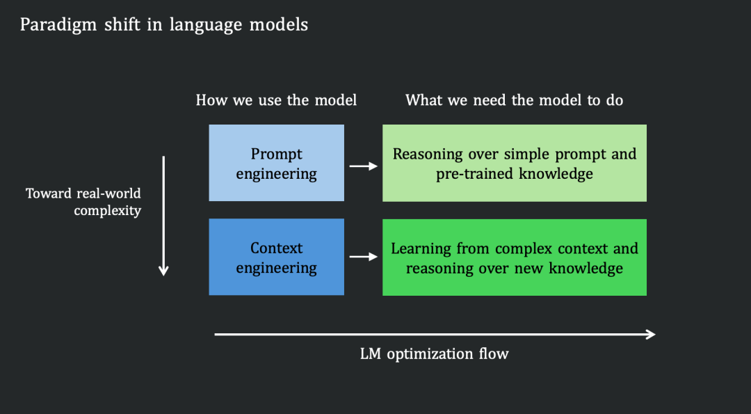而未来可能会从提示词工程专项上下文工程,从依赖预训练数据让模型变好,转向于从上下文学习来让模型变好。