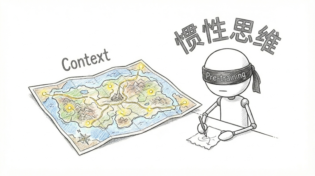 它拿到题目后,第一反应不是仔细阅读context里的新规则、新流程,而是赶紧去自己预训练的知识里看看有没有类似的东西?