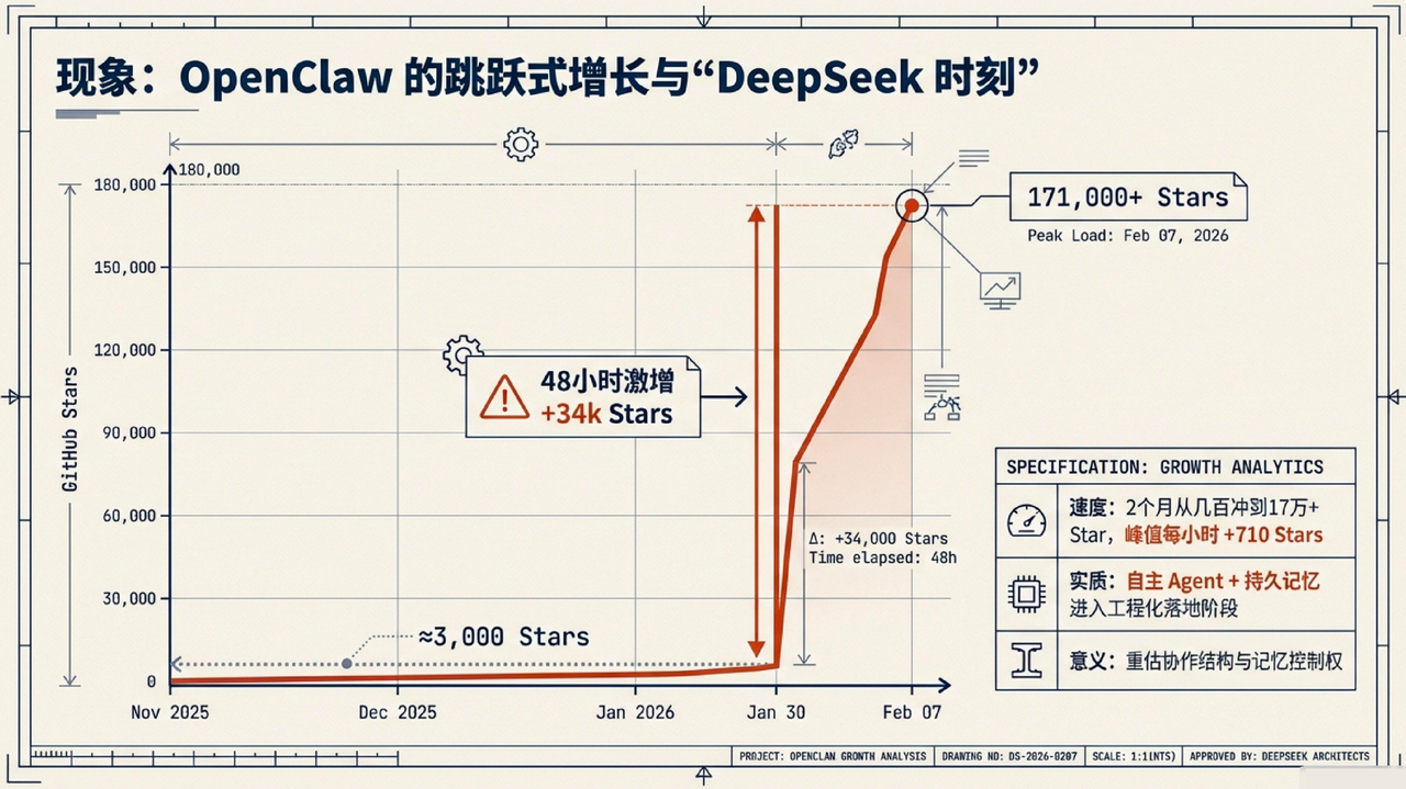 1) 先看事实:OpenClaw 的增长不是“快一点”,而是“跳跃式”