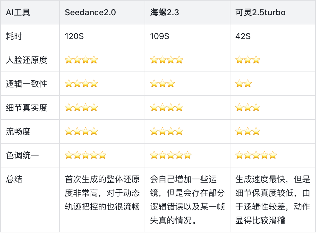 AI工具:先后测试了Seedance2.0、海螺2.3、可灵2.5turbo