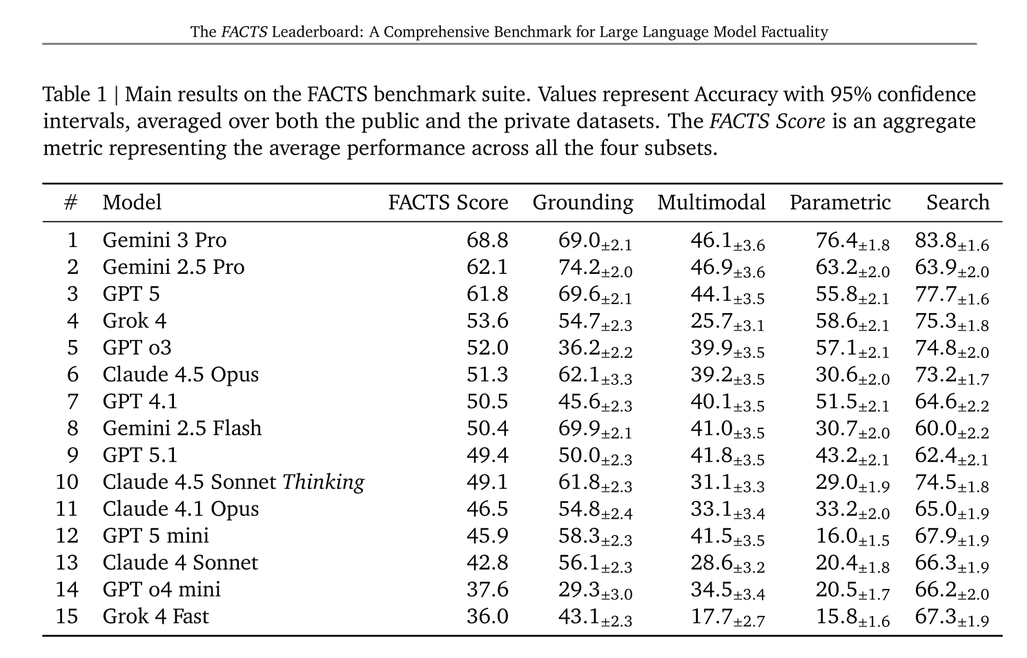 - 谷歌:《The FACTS Leaderboard: A Comprehensive Benchmark for Large Language Model Factuality》
