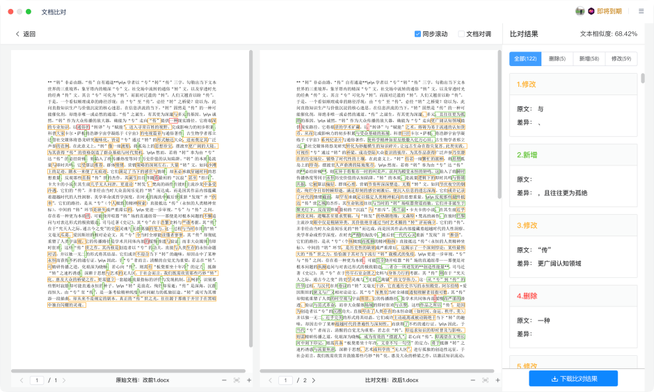 最后,我再使用文本编辑工具进行了改前和改后的内容对比,看得出来还是改动了不少地方的。