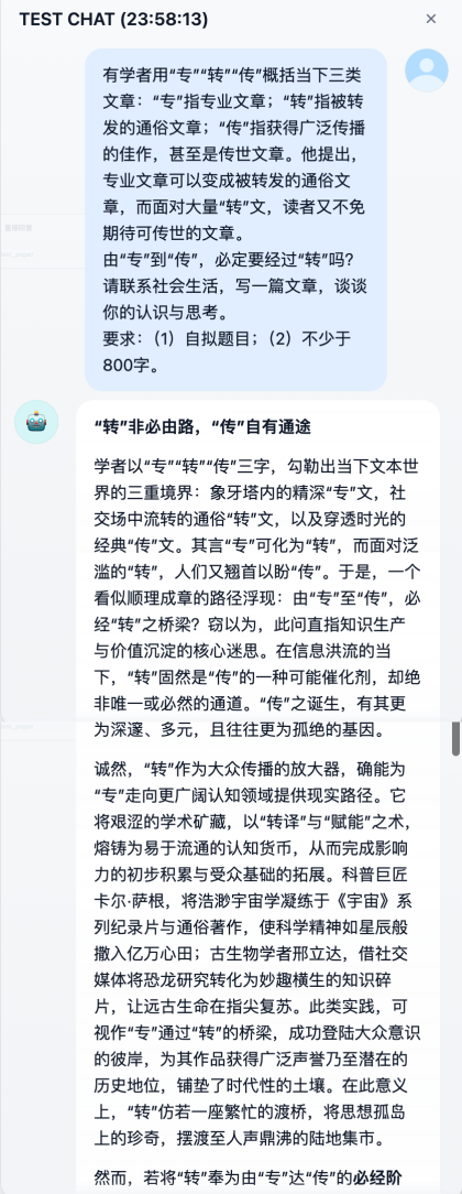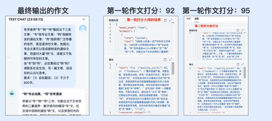 2.第二轮:AI 看到反馈后,继续改进内容并输出作文。