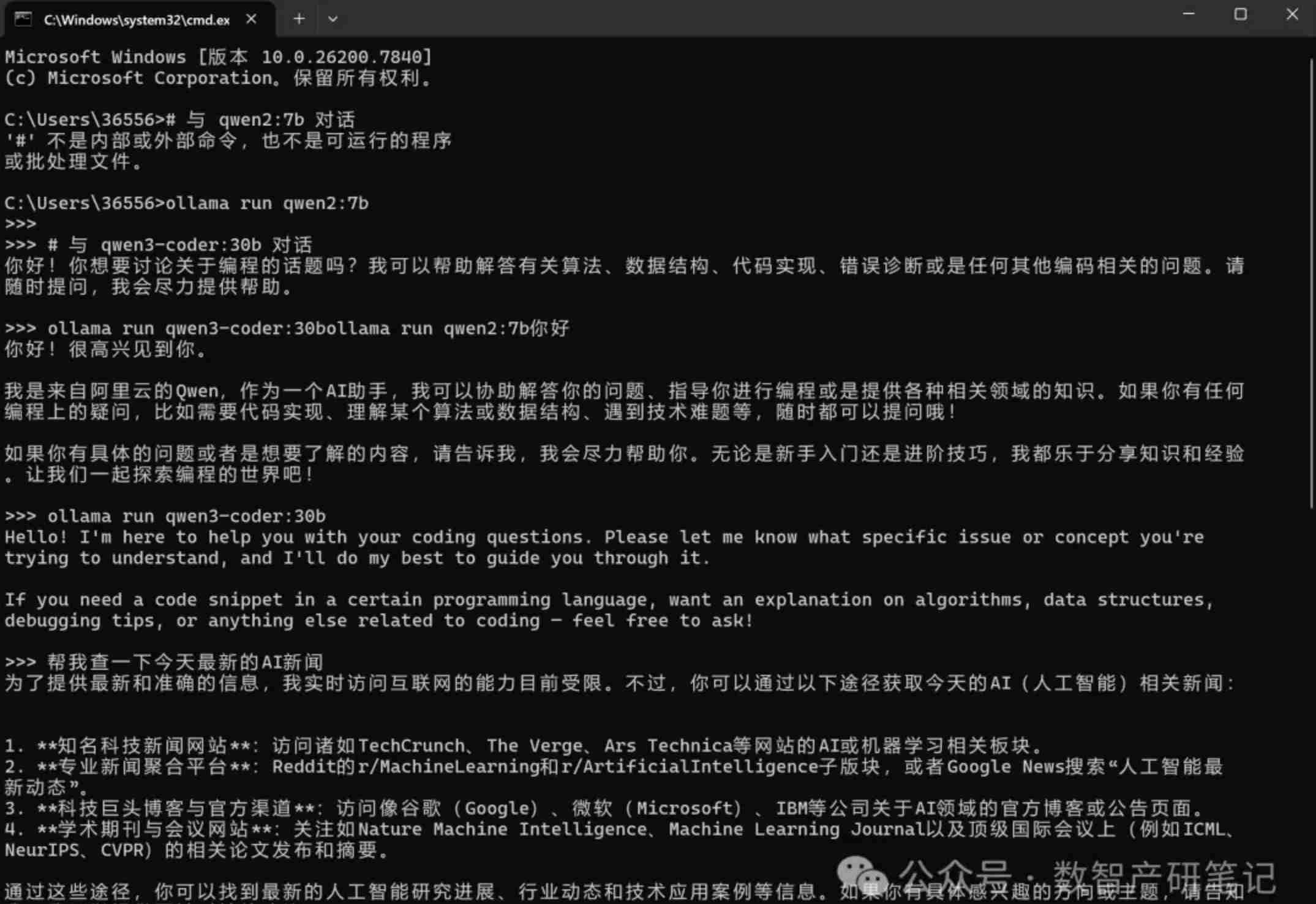 验证大模型为本地模型,Ollama也可以用powershell访问: