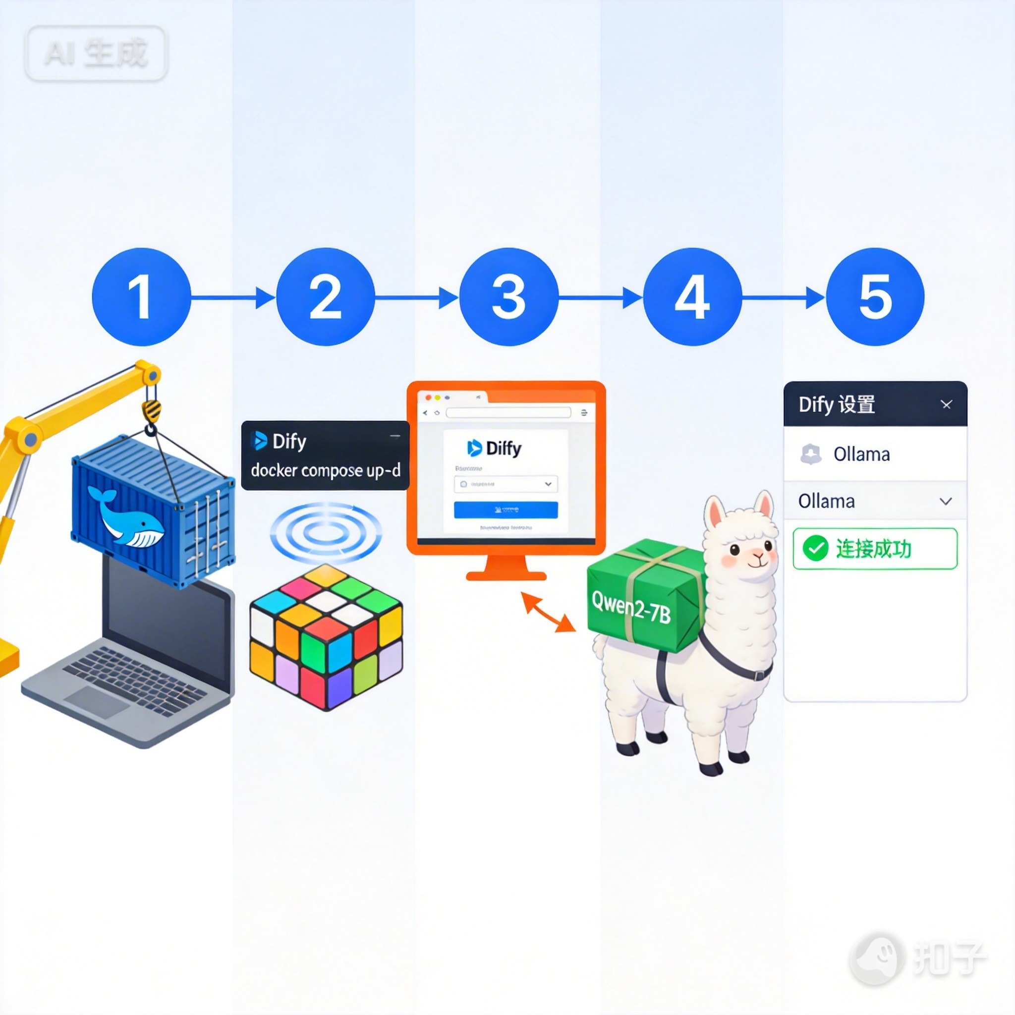 下载安装Ollama,ollama pull qwen2:7b,然后ollama run qwen2:7b,就能在命令行里对话了。这个方案5分钟搞定,没有Docker、没有Dify,就是一个纯粹的本地模型调用工具。