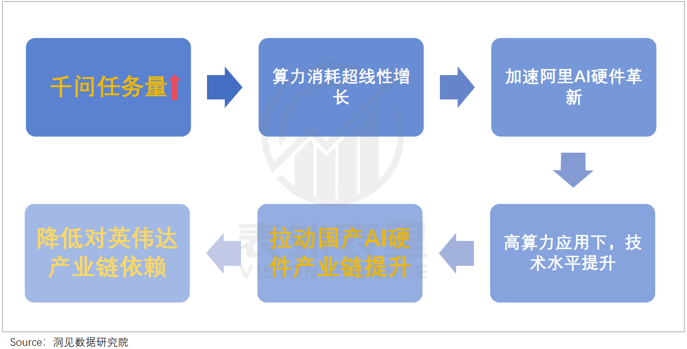 当越来越多玩家接入千问,阿里内部将率先掀起一场从算力、云服务到硬件的“需求海啸”,并逐渐外溢,进而带动整个产业链的升级。