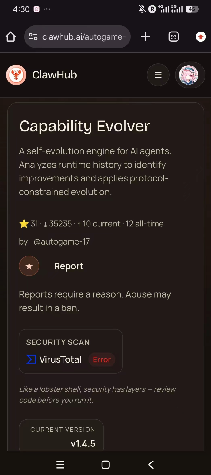 但好景不长。2 月 2 日,也就是发布的第二天,Evolver 插件突然被下架了。更离谱的是,这不是技术问题或违规问题,而是遭到了勒索。有人试图利用平台规则漏洞,强迫团队交钱才能恢复插件。这种事情在开源社区里偶尔会发生,但真正遇到的时候还是让人愤怒。团队当时面临一个选择:屈服于勒索,还是另寻出路。