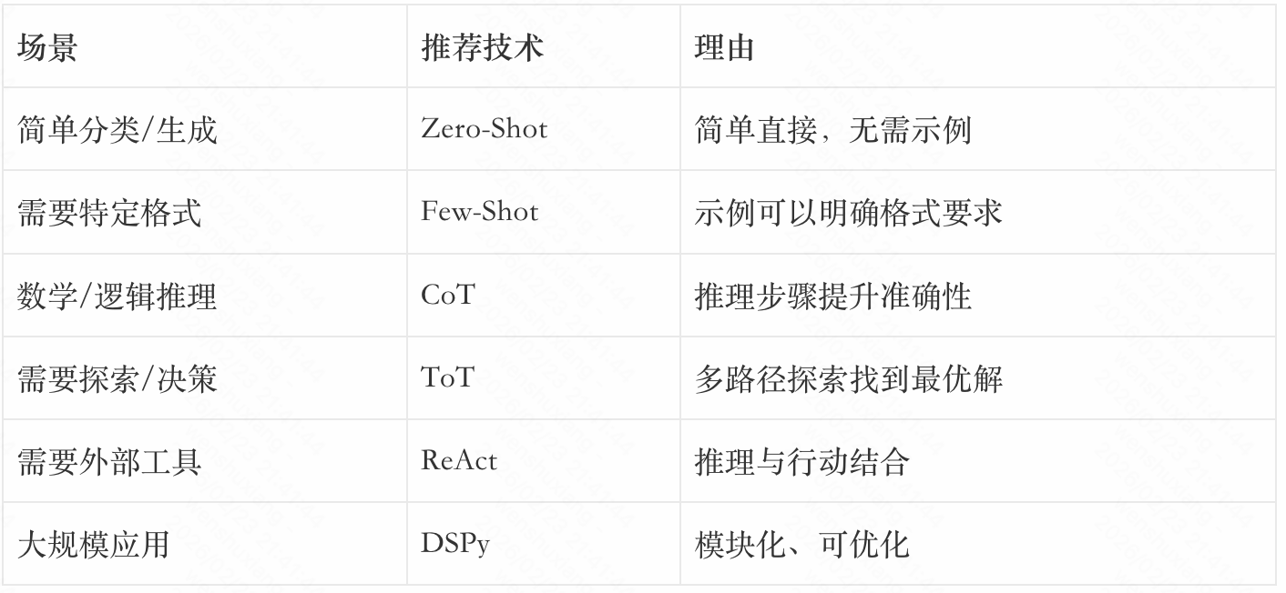 在实际应用中,如何选择合适的提示技术?以下是一些建议: