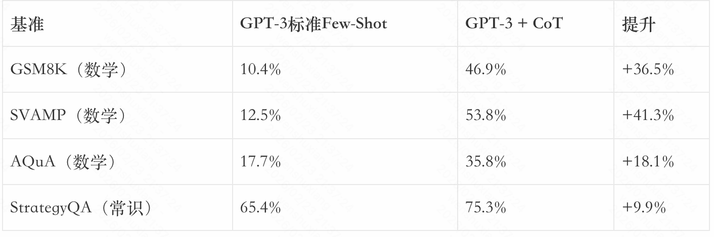 论文显示,CoT在多个推理基准上带来了显著提升: