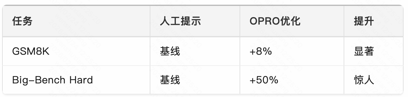 后续研究还发现,不同措辞的效果有所差异。例如,”Let’s work through this step by step”在某些任务上可能比”Let’s think step by step”效果更好。这催生了一个有趣的研究方向:提示词优化。
