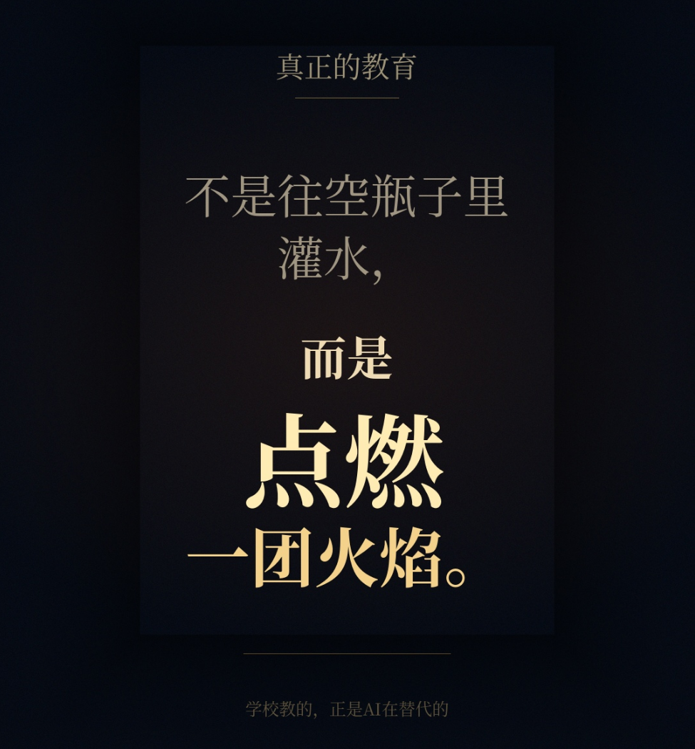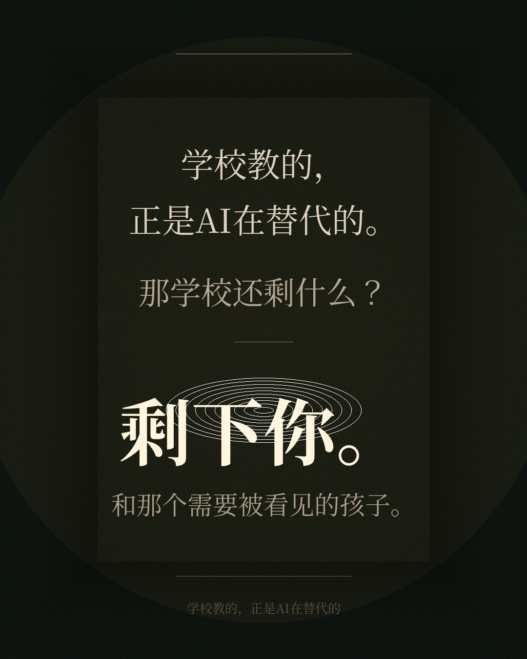 那一刻,我再次想起了那个坐在后排的孩子。我忽然有了一个清晰得近乎残忍的判断:学校教的,恰好是AI最擅长的。而学校没教的,才是人唯一剩下的优势。