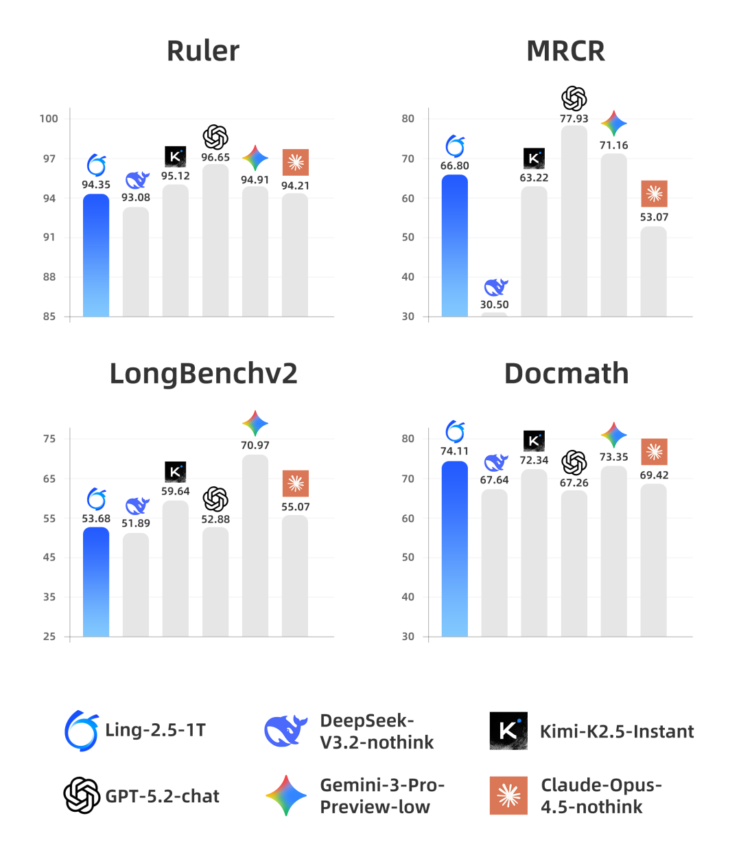 ▲ Ling-2.5-1T在4 项评测任务上的表现排名