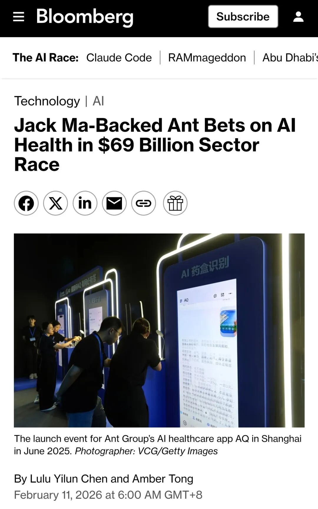▲彭博社关注报道蚂蚁集团AI业务